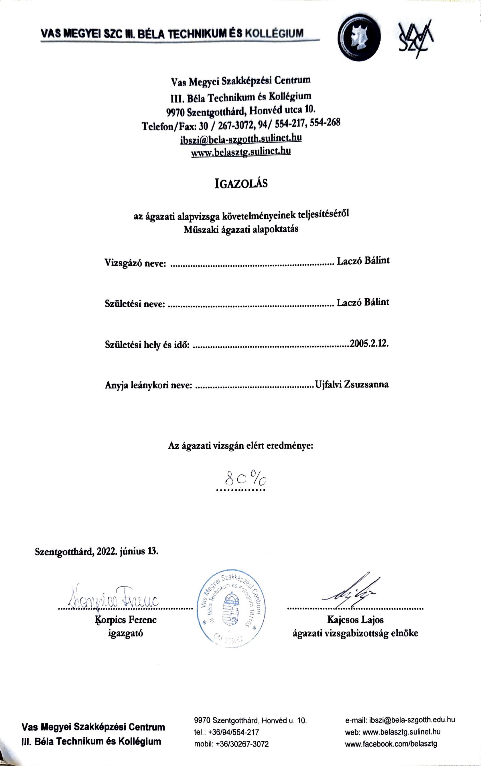 A gyakorlati vizsga során a pontosság, működőképesség és a dokumentálás voltak a legfontosabb szempontok. A vizsga során kiemelt figyelmet fordítottam a munkavédelmi szabályok betartására és a környezettudatos munkavégzésre.